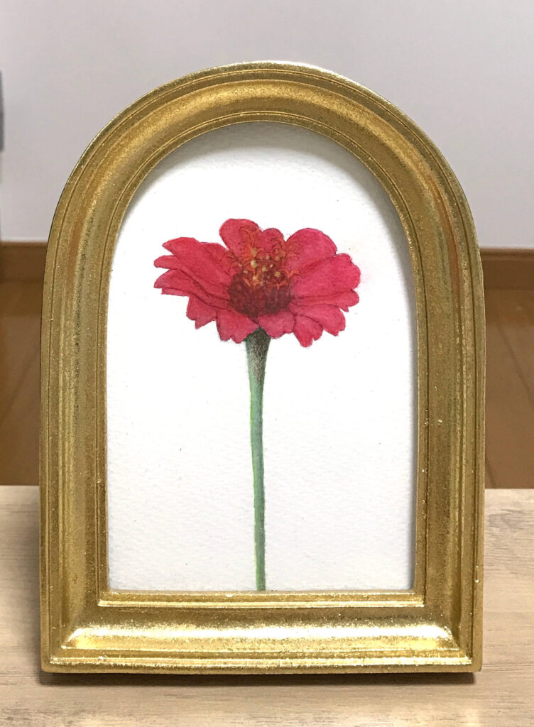 花の絵を描き始めたのは、母の誕生日に贈るプレゼントとして描いたことがきっかけでした。同じ時期に牧野富太郎の朝ドラをやっていたので、植物画に関心を抱いたということもありました。そのうち母にほかの人にも描いてと頼まれ数点描いた後に、自分の家にもほしいと思いオリジナルの作品を描きました。結局その作品は妻が気に入って職場のデスクに置いています。(笑)そしてそれから作品が増えてゆきました。