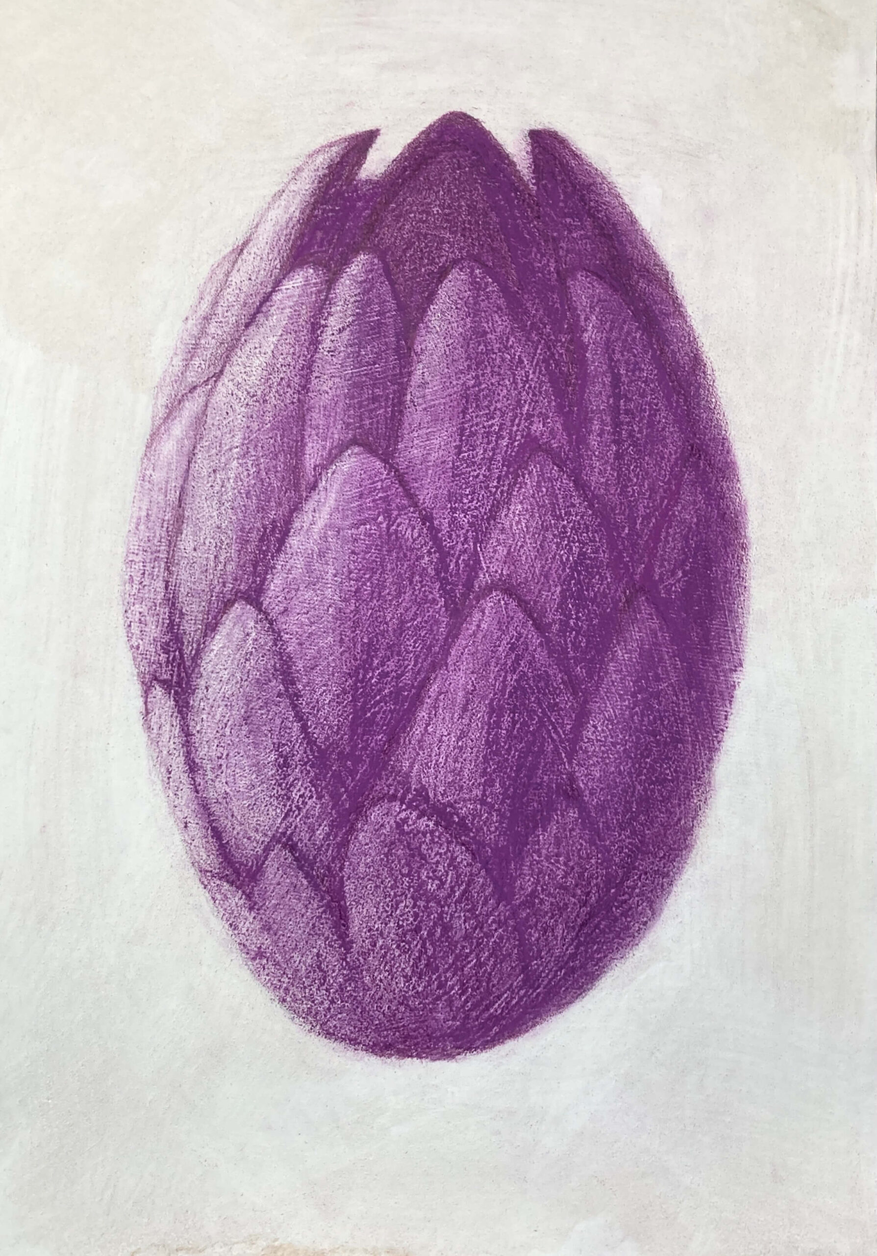 牧野富太郎植物園で最も関心を引いたのは熱帯の植物だった。それでアマゾンの植物を調べてピンとこないので、アフリカの草花を探した。そこで目を引いたのはプロテアという花だった。南アフリカのシンボルの花らしい。花言葉は「王者の風格」。そんな花のつぼみを描いた。